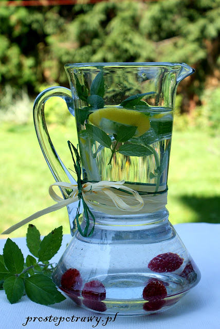 Składniki : kilka plasterków sparzonej cytryny2-3 gałązki świeżej miętykilka owoców malinwoda źródlana…
