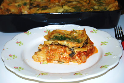 Lasagne z mięsem i pieczarkami