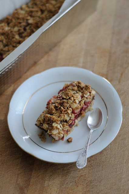 Owsiane kruche ciasto z porzeczkami i karmelem daktylowym