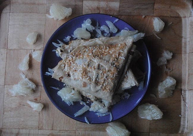 833. Naleśniki z jagodowo- różaną ricottą i bananem z tahini