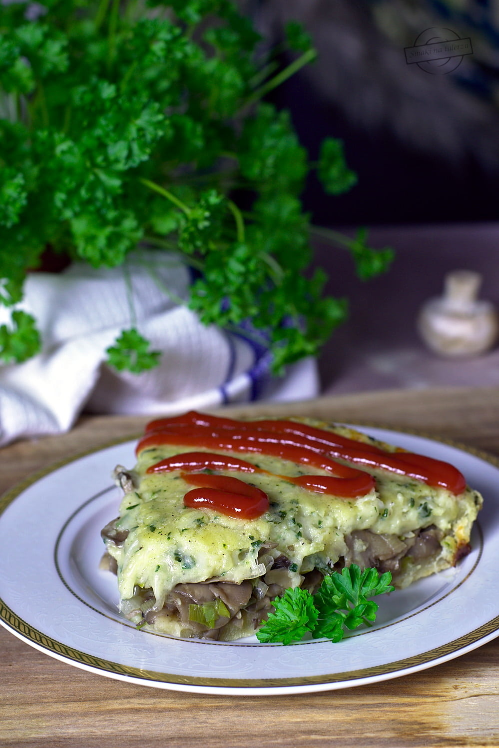 Co powiecie na pyszną wytrawną tartę z porem i pieczarkami zapieczonymi pod najlepszym na świecie serowo-pietruszkowym beszamelem?