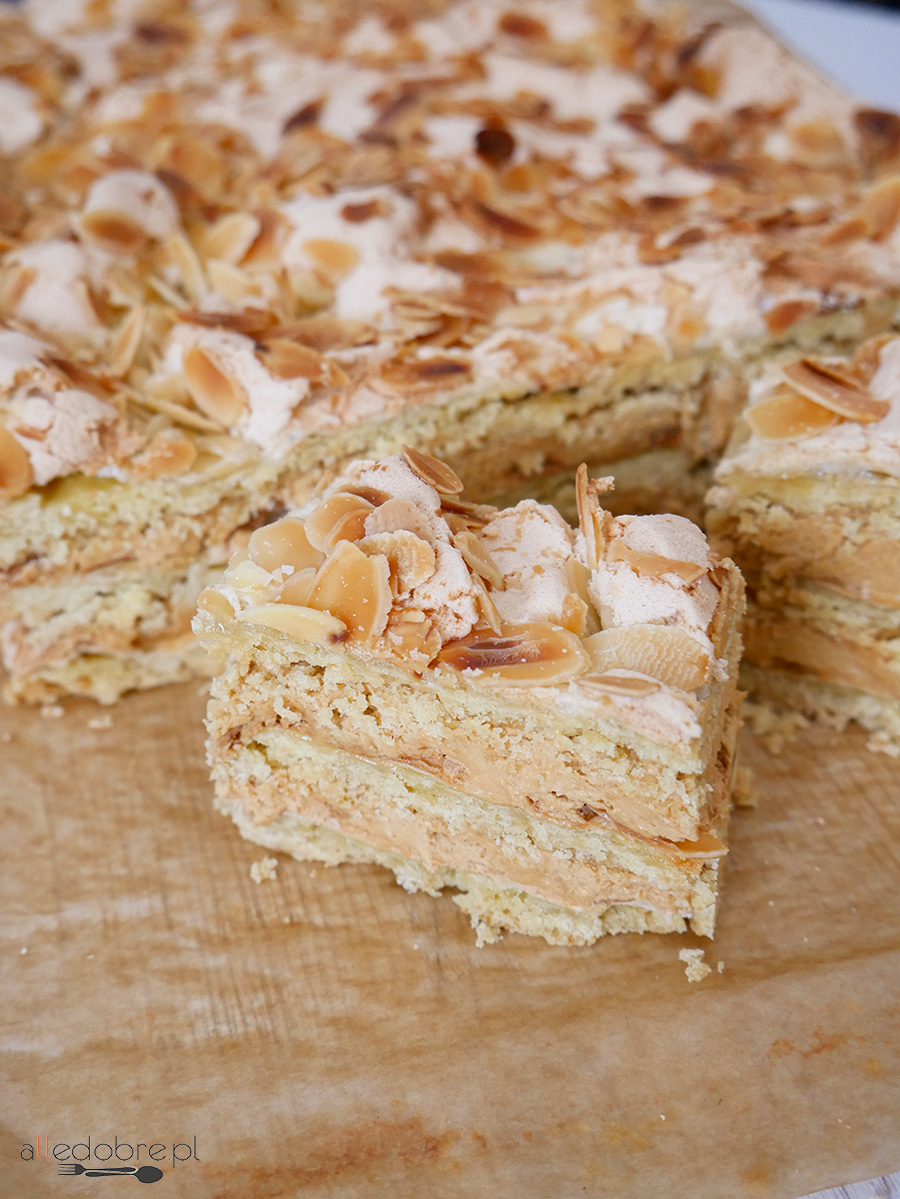 Jest delikatnie cynamonowe, wilgotne, z chrupiącymi orzechami laskowymi.