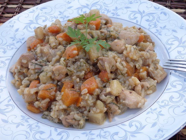 Kurczak duszony z warzywami i ryżem
