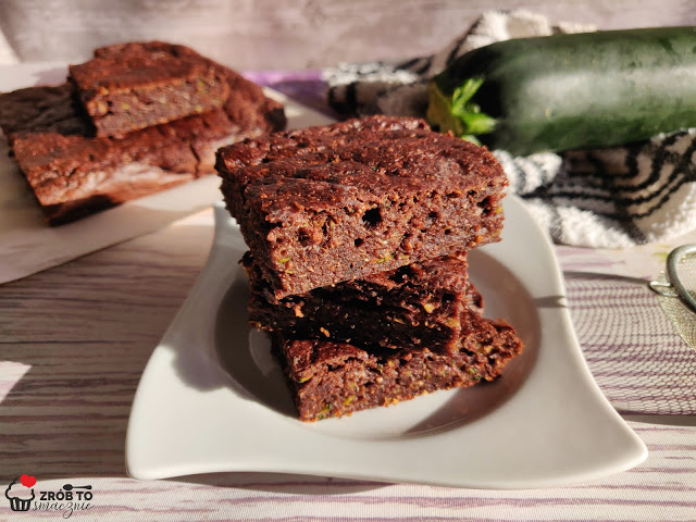 Mega wilgotne, mocno kakaowe, pyszne brownie z cukinii. Zdrowy deser słodzony erytrolem zamiast cukru, z dodatkiem mąki pełnoziarnistej. Jak wiadomo cukinia to doskonałe warzywo, które warto włączyć do swojej diety. Jest lekko strawna, niskokaloryczna i zawiera mnóstwo błonnika. Uwielbiam brownie, a dodatek cukinii jest tu praktycznie niewyczuwalny. Jeśli szukasz pomysłu