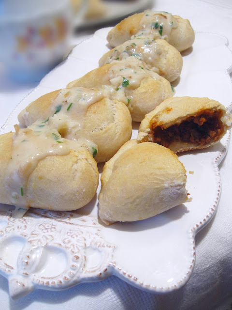 Inspiracją do tych pierogów były te, które jadłam w Toruniu w Pierogarni Stary Toruń. Wtedy pierwszy raz jadłam naprawdę dobre pieczone drożdżowe pierogi. Były nafaszerowane po brzegi! Duże, pękate i na dodatek dostałam do nich wspaniały sos grzybowy, w którym czułam prawdziwe suszone grzyby!