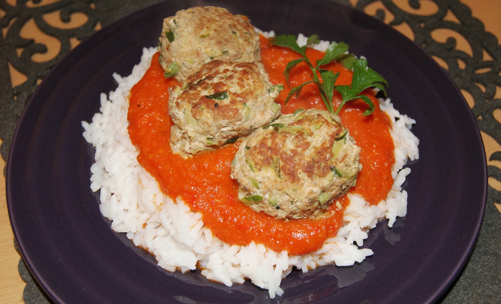 Pulpeciki wieprzowe z cukinią w sosie pomidorow-paprykowym