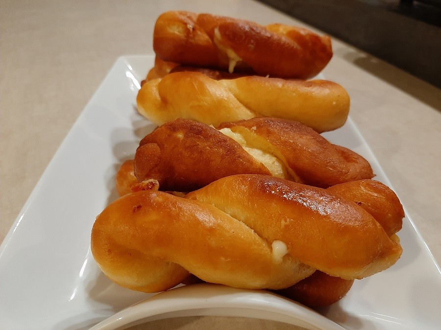 Do tej pory pączki kojarzyły mi się wyłącznie ze słodkim nadzieniem. Aż do chwili, gdy usmażyłam pączki z mozzarellą i większość rodziny zakochała się w nich 🙂 Puszyste, zakręcone pączki z mozzarellą zaskakują wyjątkowo udanym połączeniem słodkiego smaku ze słoną nutą oraz intrygującym wyglądem 🙂