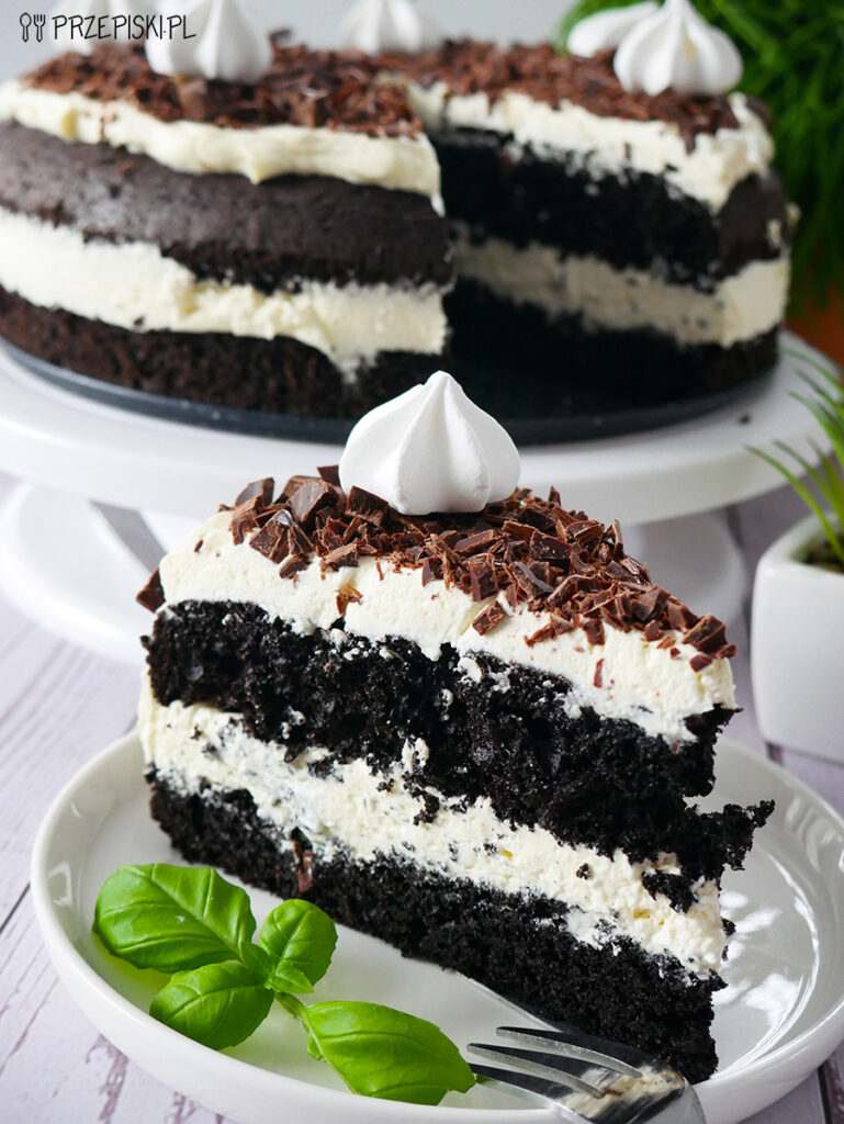 Mocno kakaowe ciasto z kremem o nazwie czarna mamba. Wygląda bardzo elegancko…