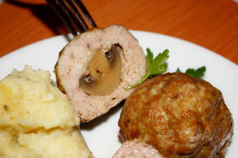 Pieczone kotleciki mielone z pieczarką Wspaniałe pieczone kule z zamkniętą w środku…