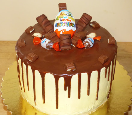 W końcu zabrałam się za zrobienie tego tortu. Długo myślałam jakie smaki zrobić do środka i postawiłam oczywiście na jeden smak to krem z mascarpone z czekoladkami Kinder bueno, przełamany żelką malinową, a drugi smak to mus czekoladowy, który połączyłam z prażonymi orzechami laskowymi dzięki którym smak naprawdę przypomina