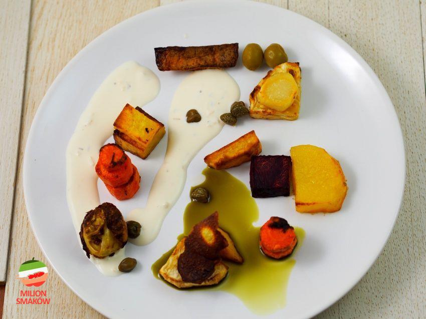 Pieczone warzywa z sosem majonezowym i olejem z pestek dyni