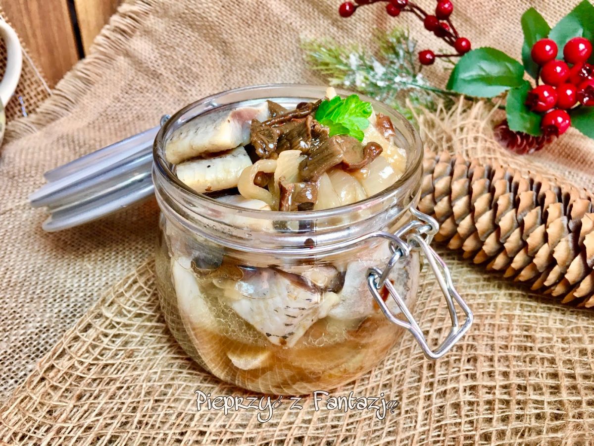 Pyszne śledzie z grzybami i aromatem jałowca, świetna przekąska i zakąska pod mocniejszy trunek. Zapraszam po przepis.