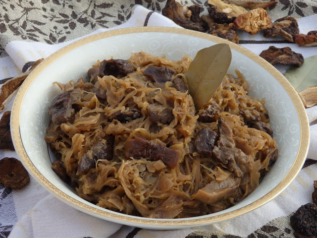Kapusta z grzybami często gości na świątecznych stołach. U mnie również czasami się pojawia. Taka kapusta jest bardzo uniwersalna ponieważ można ją zajadać samą jako danie postne, można podać także jako dodatek do jakiegoś mięsa, dodać do łazanek lub też dobrze odparować i zmielić na farsz do uszek, pierogów czy