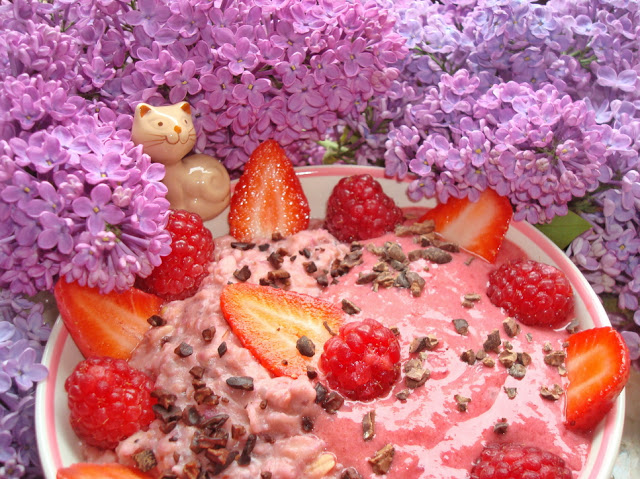 Malinowa owsianka z truskawkami, malinami i ziarnem kakao Czytaj Dalej