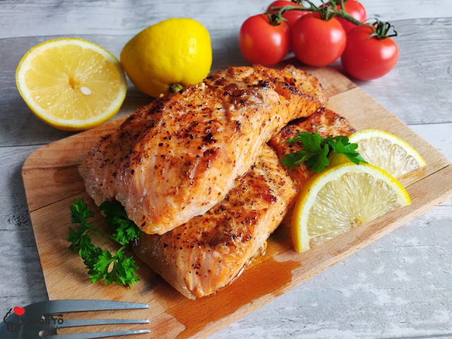 Łosoś smażony na patelni na maśle klarowanym to doskonały dodatek obiadowy np do makaronu, ale również może stanowić bazę do wykonania pysznej sałatki. Wystarczy tylko doprawić z obu stron solą i pieprzem a potem obsmażyć. Chrupiący z zewnątrz a miękki i soczysty w środku. Uwielbiam łososia i bardzo często przyrządzam