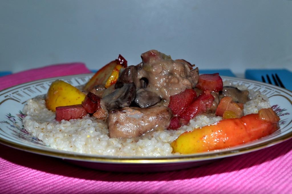 Takie inne danie, wątróbka z jabłkiem jest stosunkowo popularna, ale z rabarbarem,…