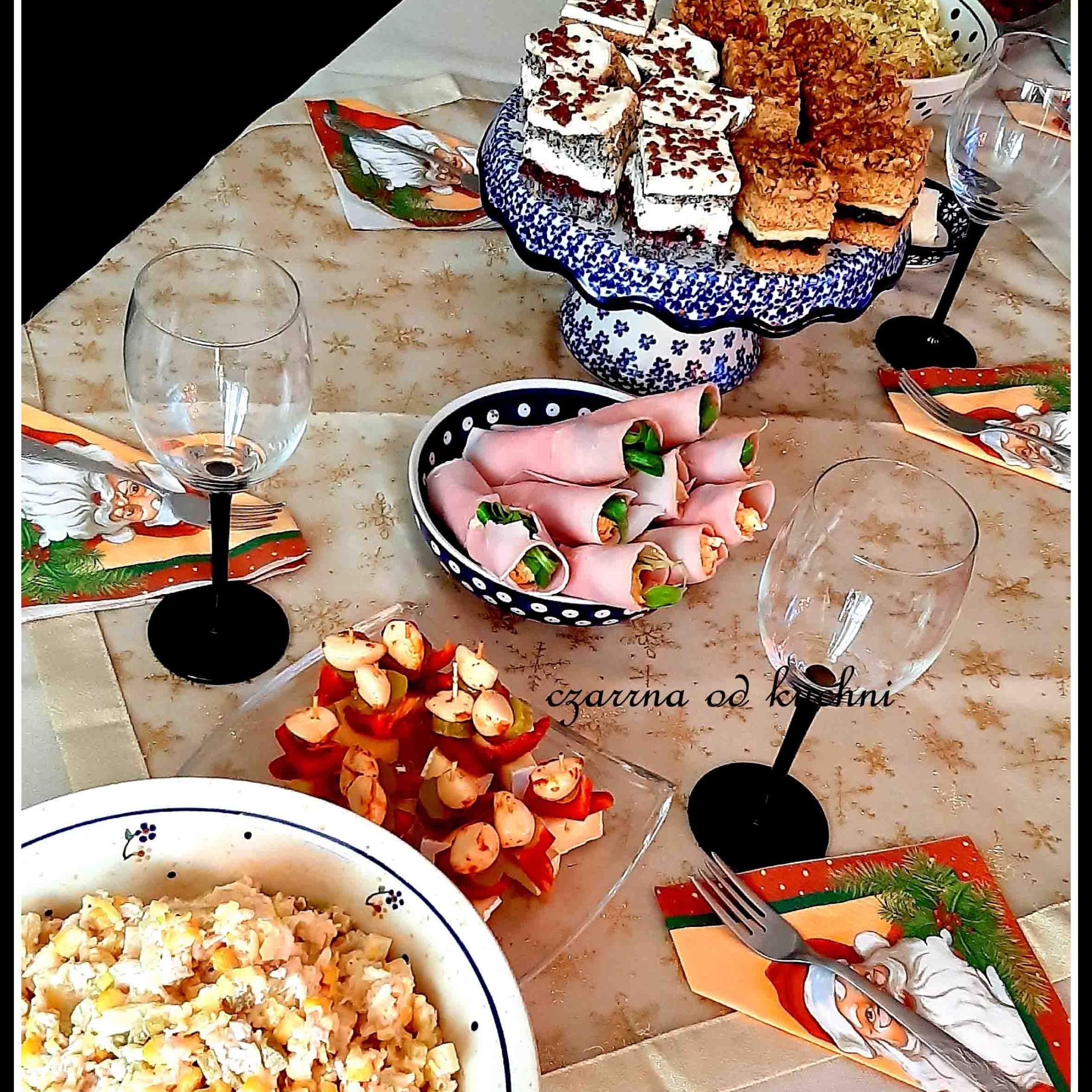 A oto kilka moich propozycji na karnawałowy stół 🙂 Miodownik Ciasto makowo-kokosowe z kremem Sałatka z serem i ananasem Roladki z szynki