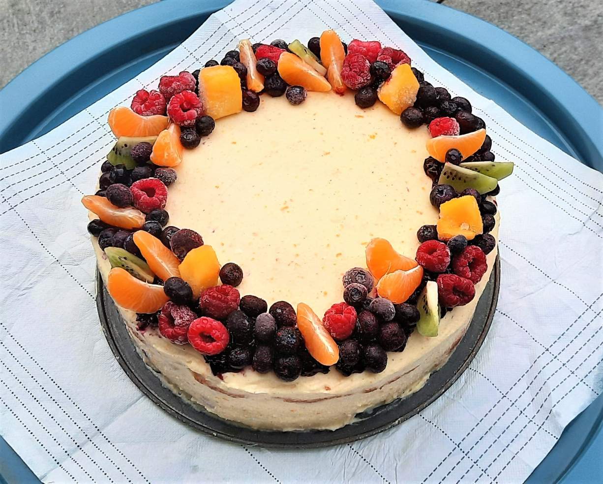 Ten tort, tort budyniowy z owocami, powstał mimo braku dostępu do miksera. Myślałam, że to niemożliwe, ale jednak Miałam do dyspozycji jedynie blender z końcówką rozdrabniającą! Ale w potrzebie wszystko może się udać