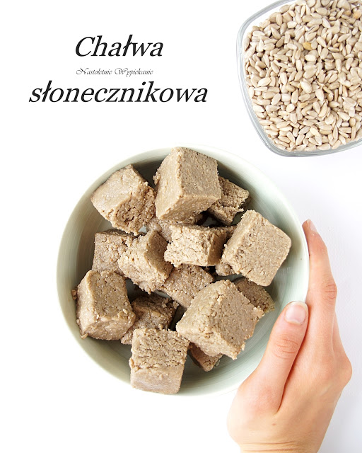 W porównaniu do wersji klasycznej- chałwy sezamowej, do tej słonecznikowej dałam 100…