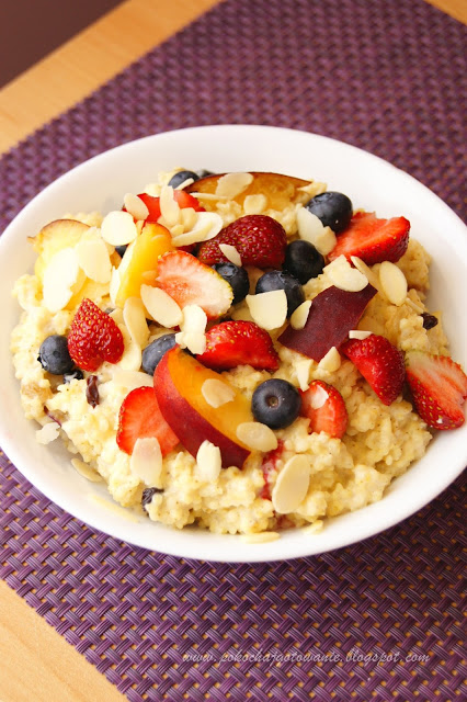 Składniki:– 1 filiżanka kaszy jaglanej– garść rodzynek– garść płatków migdałowych– 1 łyżka…