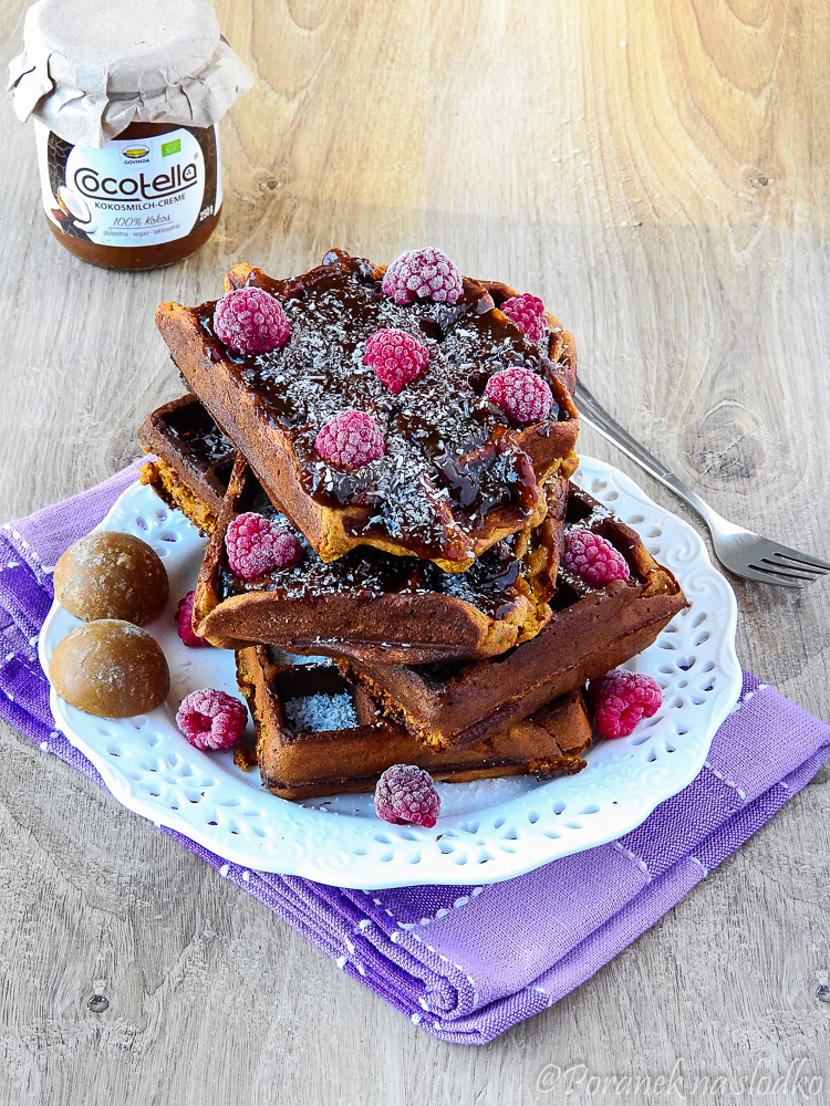 GOFRY ŻYTNIO-OWSIANE Z MANGO/przepis własny/Składniki:Ciasto:45g mąki żytniej razowej25 g mąki owsianej1 jajkołyżka…