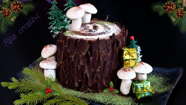 Przepis na Świąteczny Tort Pień. Torcik wykonany jest na kakaowym biszkopcie, przełożony…
