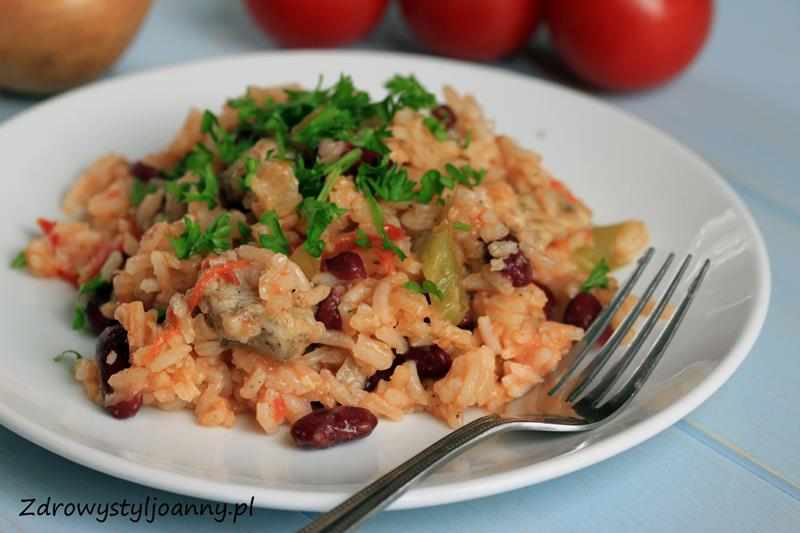 Kurczak z ryżem i warzywami. Danie jednogarnkowe.