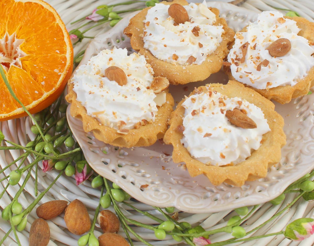 Kruche babeczki z pastą migdałową i bitą śmietaną