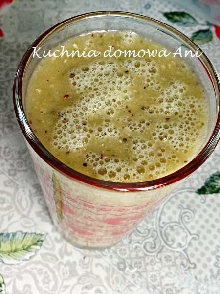 1 banan2 owoce kiwipo kilka listków świeżej mięty i melisysok jabłkowy do uzupełnienia