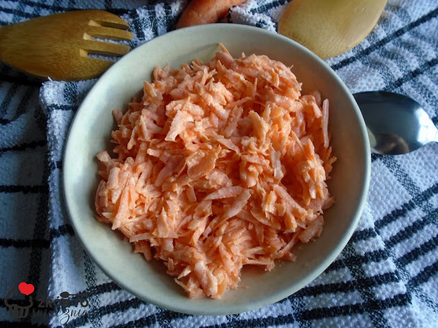 Surówka z marchewki to pyszny dodatek do obiadu, a ta z marchewki ze śmietaną to smaki mojego dzieciństwa. O surówce przypomniałam sobie dziś po wielu latach i od razu postanowiłam ją zrobić do obiadu. Przepis jest bardzo prosty a składniki zazwyczaj mamy w domu pod ręką. Polecam :)Składniki: