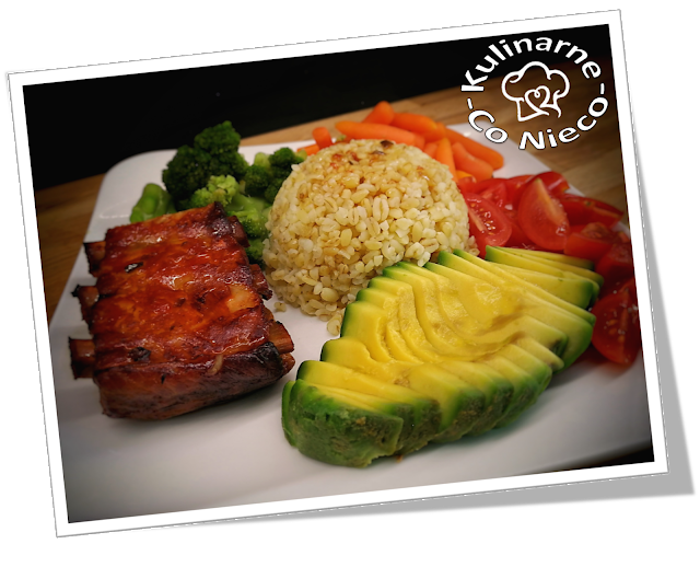 Pieczone Żeberka w Sosie Barbecue z Kaszą Bulgur i Warzywami