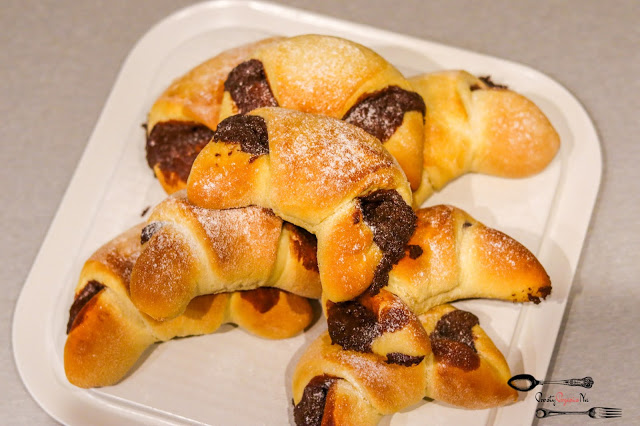 Drożdżowe rogale z czekoladą to smak mojego dzieciństwa. Pamiętam jak tata zawsze przynosił nam je co rano na śniadanie. Ostatnio zatęskniłam za tym smakiem i postanowiłam zrobić je u siebie w domu – wyszły jeszcze pyszniejsze niż te ze wspomnień 😉