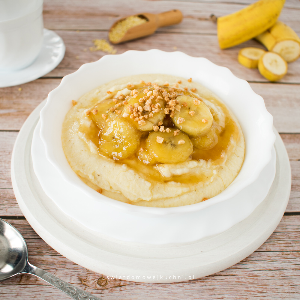 Jaglana – czyli zdrowsza alternatywa dla tradycyjnego budyniu. Budyń jaglany jest bardzo prosty do przygotowania. Powstaje ze zmiksowanej, ugotowanej kaszy jaglanej i mleka np. kokosowego. Budyń jaglany z karmelizowanymi bananami, to danie, które stanowi pyszny posiłek i idealnie sprawdzi się na śniadanie.