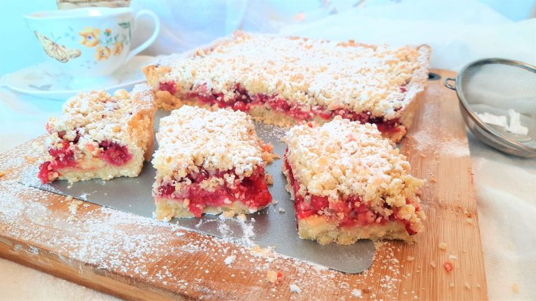 Kruche ciasto na krupczatce z czerwoną porzeczką