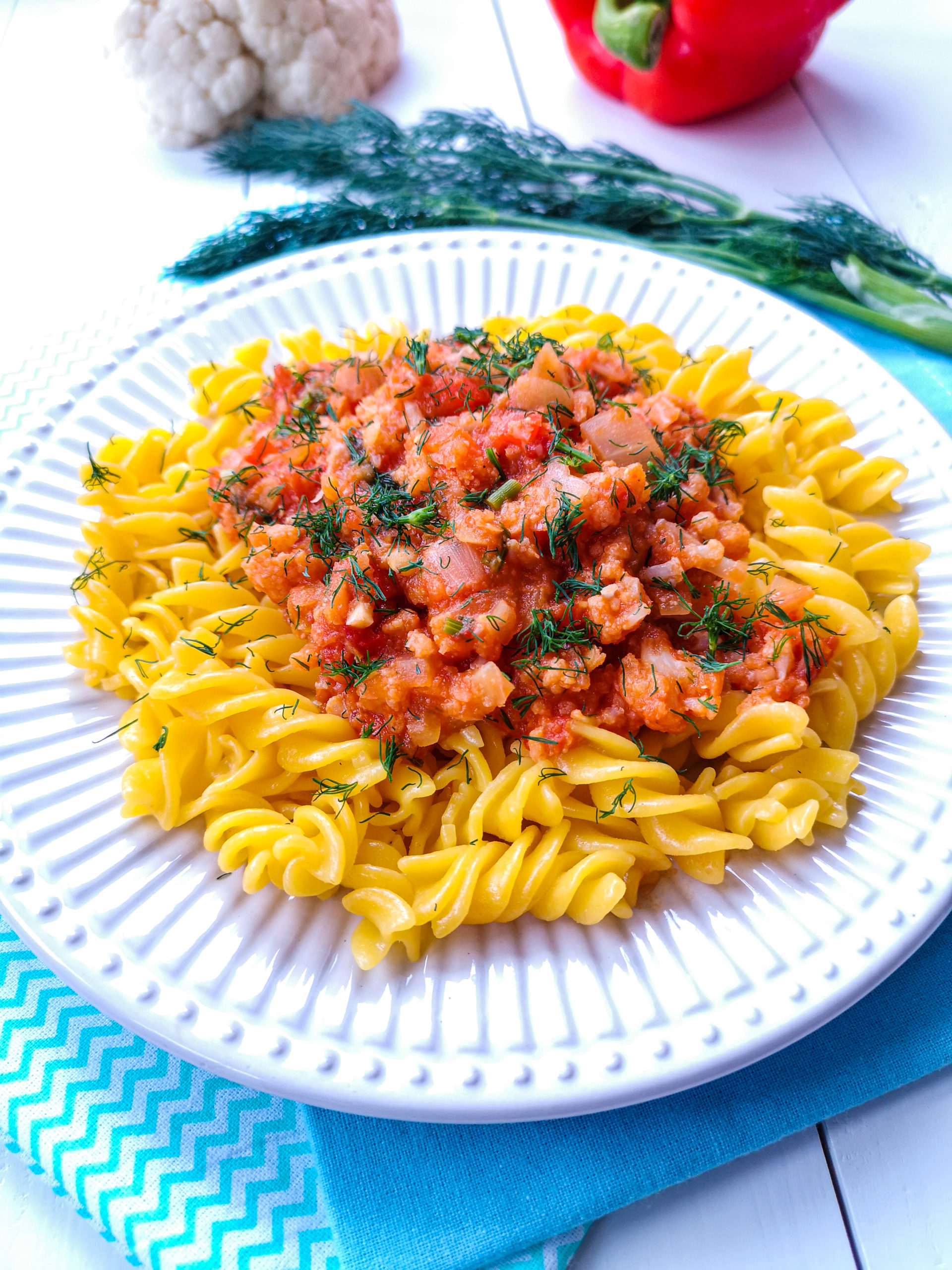 Kalafior to jedno z moich ulubionych warzyw i chętnie dodaję go do różnych potraw. Niby takie niepozorne, białe, a jednak ma w sobie smak, który wprowadza wiele do dania. Tym razem dodałam go do sosu, który podałam z makaronem. Sos wyszedł pyszny, choć jest bardzo prosty i przyprawiony jedynie