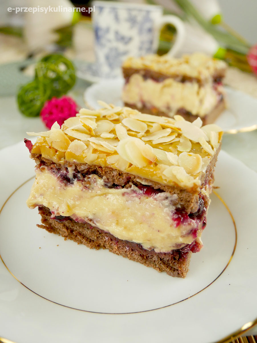 Pyszne ciasto czekoladowy Kubuś, składające się z kakaowego biszkopta, masy budyniowej na…