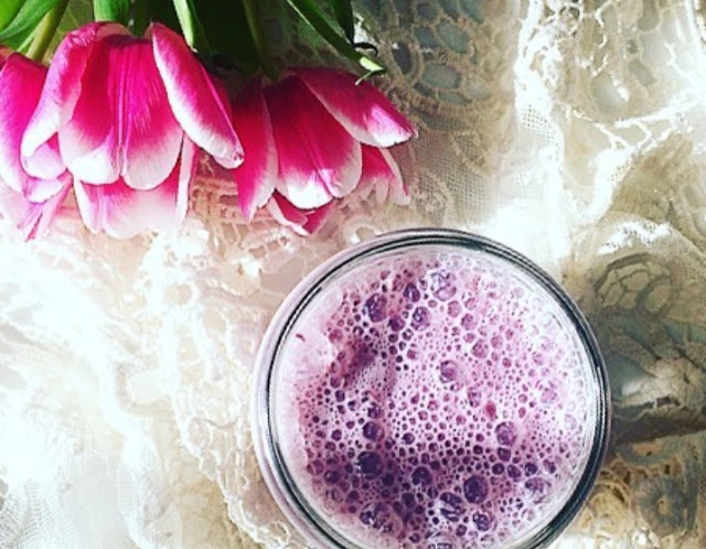 czarna porzeczka mrożona + jagody acai + mleko kokosowe + miód