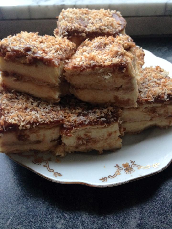 1 kg twarogu z wiaderka200g masła1 szkl. cukru1 cukier waniliowy4 jajka100 ml mleka2 budynie wanilioweherbatniki ok. 4 paczkipół czekoladymasa kajmakowa