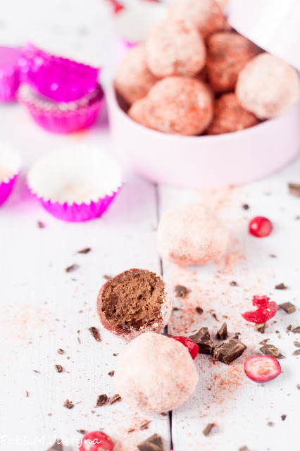 Trufle w żurawinowym cukrze