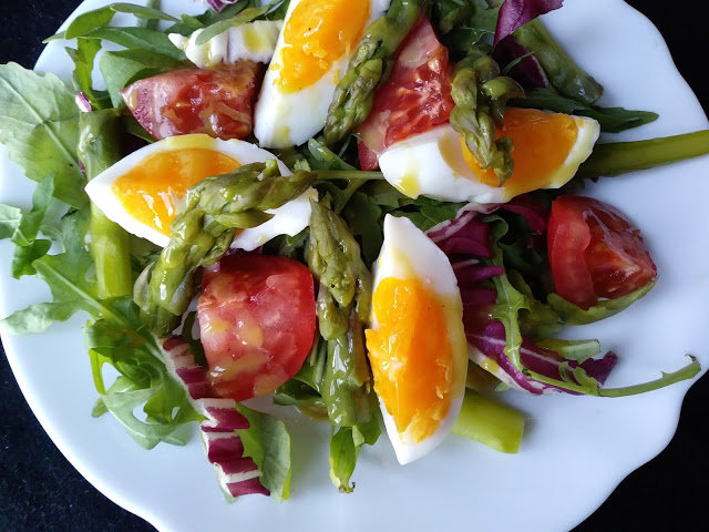 Pyszna, kolorowa sałatka z zielonych szparagów z jajkiem i pomidorem, to moja…