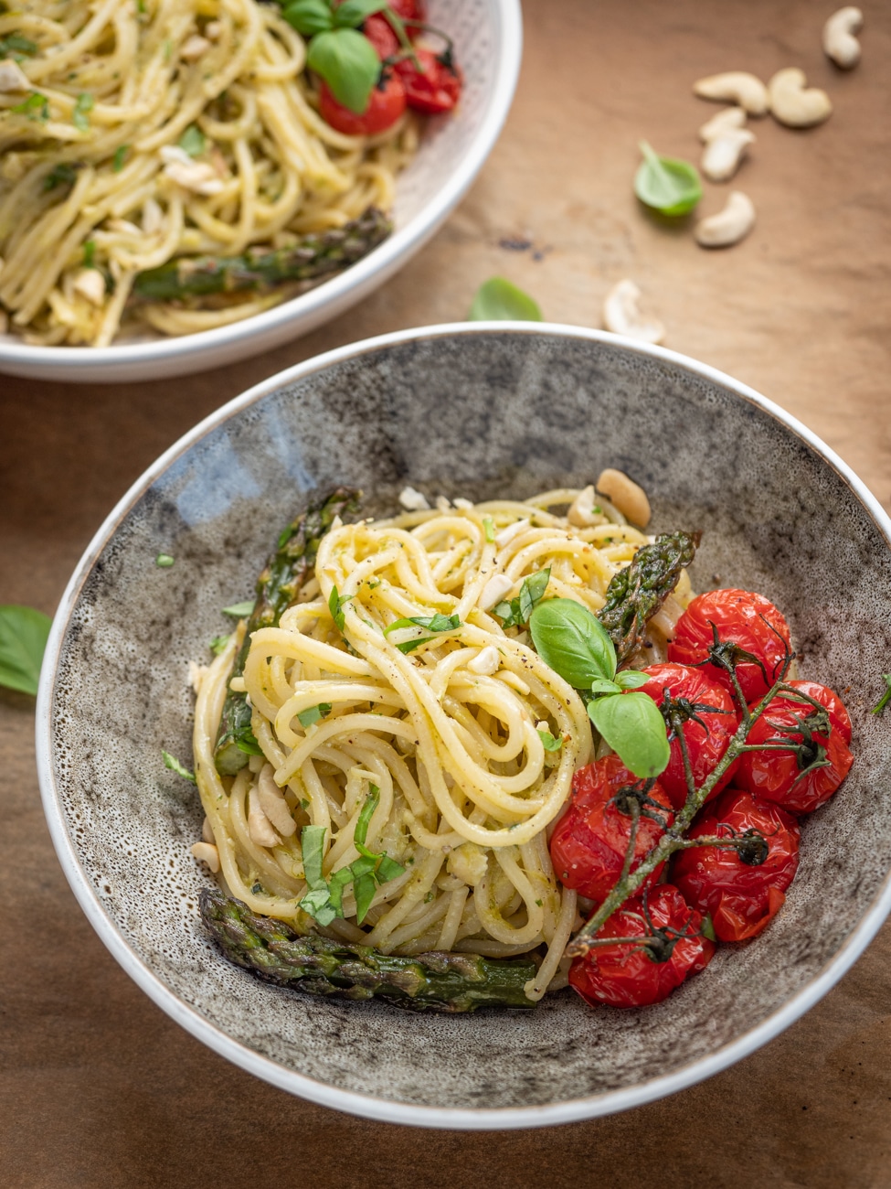 Makaron ze szparagami i pieczonymi pomidorkami Szukasz pomysłu na obiad ze szparagami?…