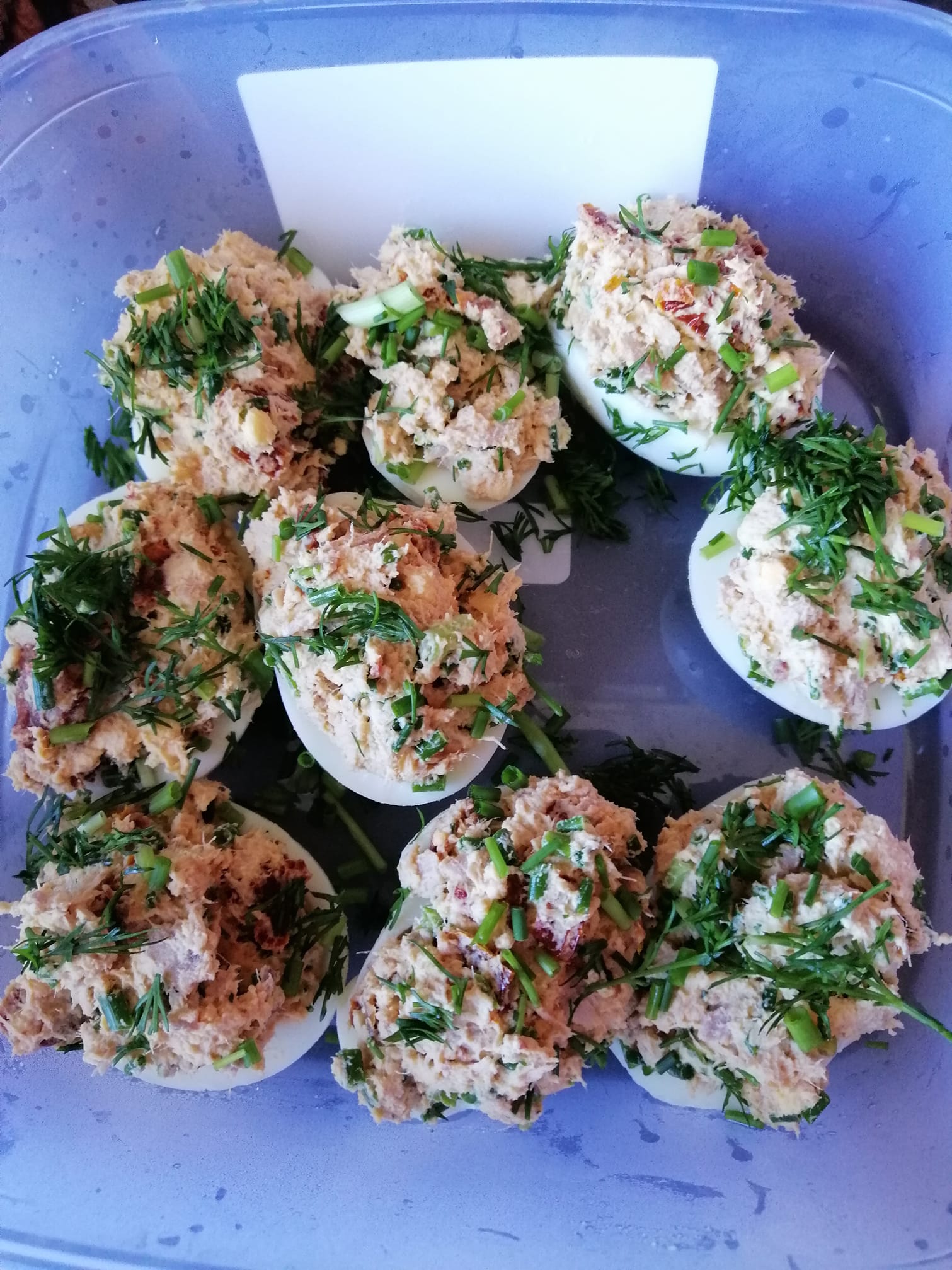 Jajka faszerowane tuńczykiem i suszonymi pomidorami to doskonała propozycja zarówno na śniadanie…