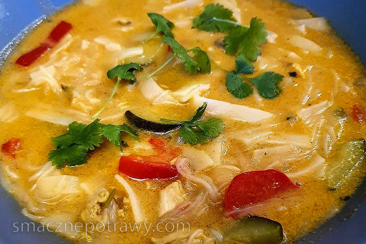 Zupa tajska z kurczakiem jest pyszna, prosta w przygotowaniu oraz pełna automatycznych przypraw. Zupa cieszy się ogromną popularnością. Przepis pochodzi od sympatycznej Moniki. Dziękuję bardzo za przesłanie przepisu. Składniki łyżka oleju kokosowego 2 łyżeczki czerwonej pasty curry 1 pojedyncza pierś kurczaka 1/2 cebuli 1 cukinia