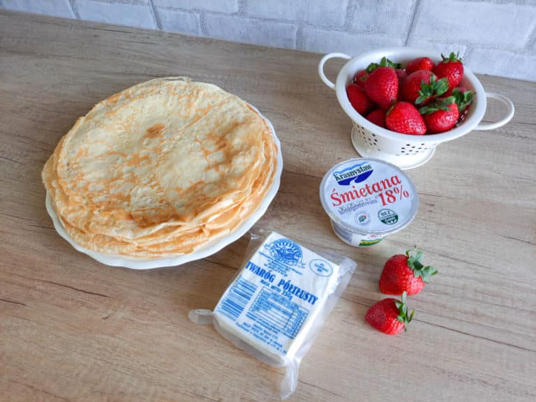 Naleśniki z białym serem na słodko możesz przygotować w ramach słodkiego obiadu lub deseru. Z przepisu wyjdzie 14 sztuk najlepszych, cienkich naleśników z chrupiącym brzegiem. To najlepszy przepis na naleśniki na słodko jaki znam, masło w cieście naleśnikowym sprawia że ładnie się rumienią podczas smażenia. Nadzienie z sera białego i