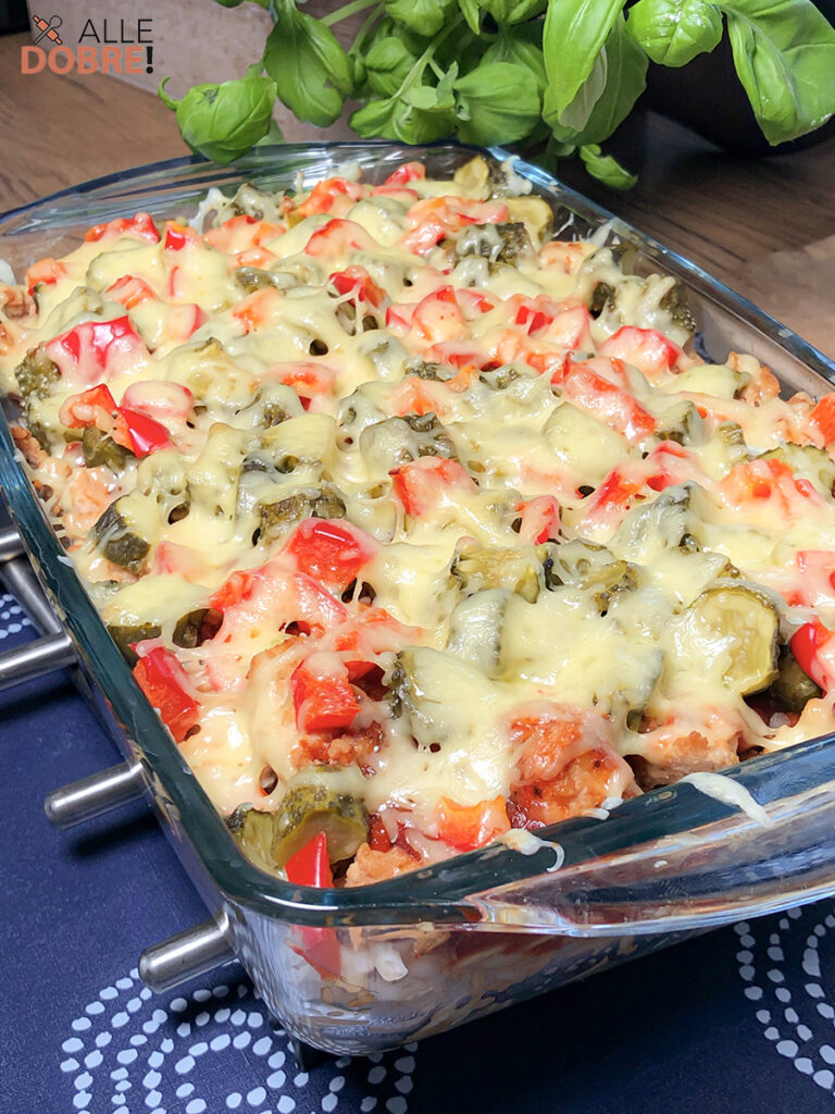 Zapiekanka ryżowa z mięsem mielonym z dodatkiem ogórka kiszonego i papryki to bardzo smaczne i sycące danie, w sam raz na obiad dla całej rodziny. Zapiekanka z ryżu i mięsa mielonego jest bardzo prosta w przygotowaniu i nie wymaga wiele czasu ani wyszukanych składników. Zatem jeśli szukacie prostego i smacznego