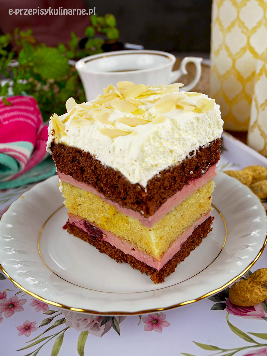 Ciasto Słodka Magnolia to przepis na rewelacyjny biszkopt przełożony różowym kremem budyniowym na bazie soku wiśniowego, z bitą śmietaną na wierzchu. Jeśli upieczecie go w okrągłej formie z powodzeniem może posłużyć jako tort na wyjątkowe okazje. Ciasto jest puszyste, wilgotne i nie za słodkie – po prostu pyszne.