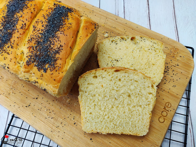 Domowy chleb pszenny z makiem jest miękki, puszysty i szybki w przygotowaniu. Najlepszy jeszcze ciepły (choć to nie zdrowe), posmarowany masłem- najlepiej domowym- i dżemem truskawkowym. Chleb ten dobrze się kroi zaraz po wyjęciu go z piekarnika, wtedy w domu unosi się cudowny zapach pysznego, domowego pieczywa. Kiedyś nie znosiłam