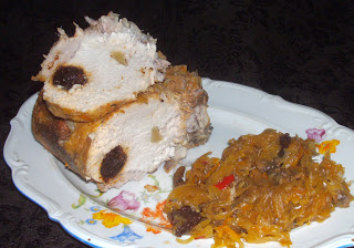 Składniki: schab z kością 1,5 kg, śliwki suszone 20 sztuk, czosnek ząbki…