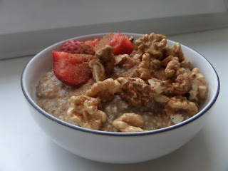 Owsianka na mleku kokosowym z bananem i jeżynami. My też się uśmiechamy…