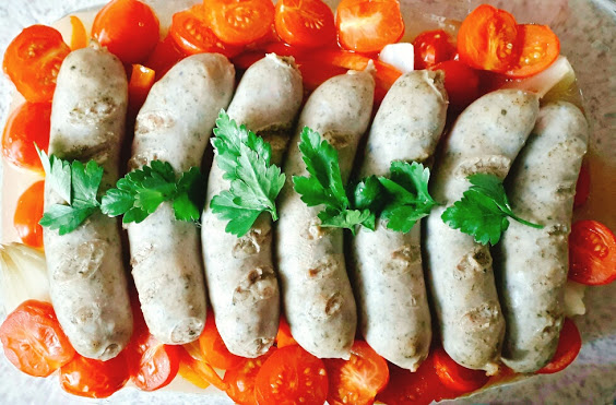 Zapiekana biała kiełbasa świetnie się sprawdzi jako danie obiadowe lub kolacyjne.
